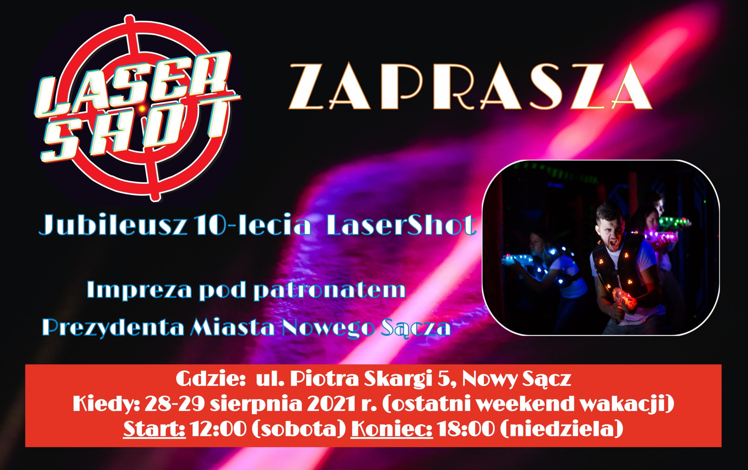 Zakończył się dwudniowy jubileusz 10-lecia nowosądeckiego LaserShot. W ramach świętowania postanowiliśmy wspomóc zmagania Elizy z walką z nowotworem Udało się zebrać 2671 złotych. Szczególnie, co zasługuje na ogromne podziękowanie to tym wszystkim, którzy wzięli udział w charytatywnym jubileuszu. Zainteresowanie przerosło nasze najśmielsze oczekiwania. Musieliśmy otworzyć się już o 11:00, godzinę przed czasem, gdyż chętni już […]