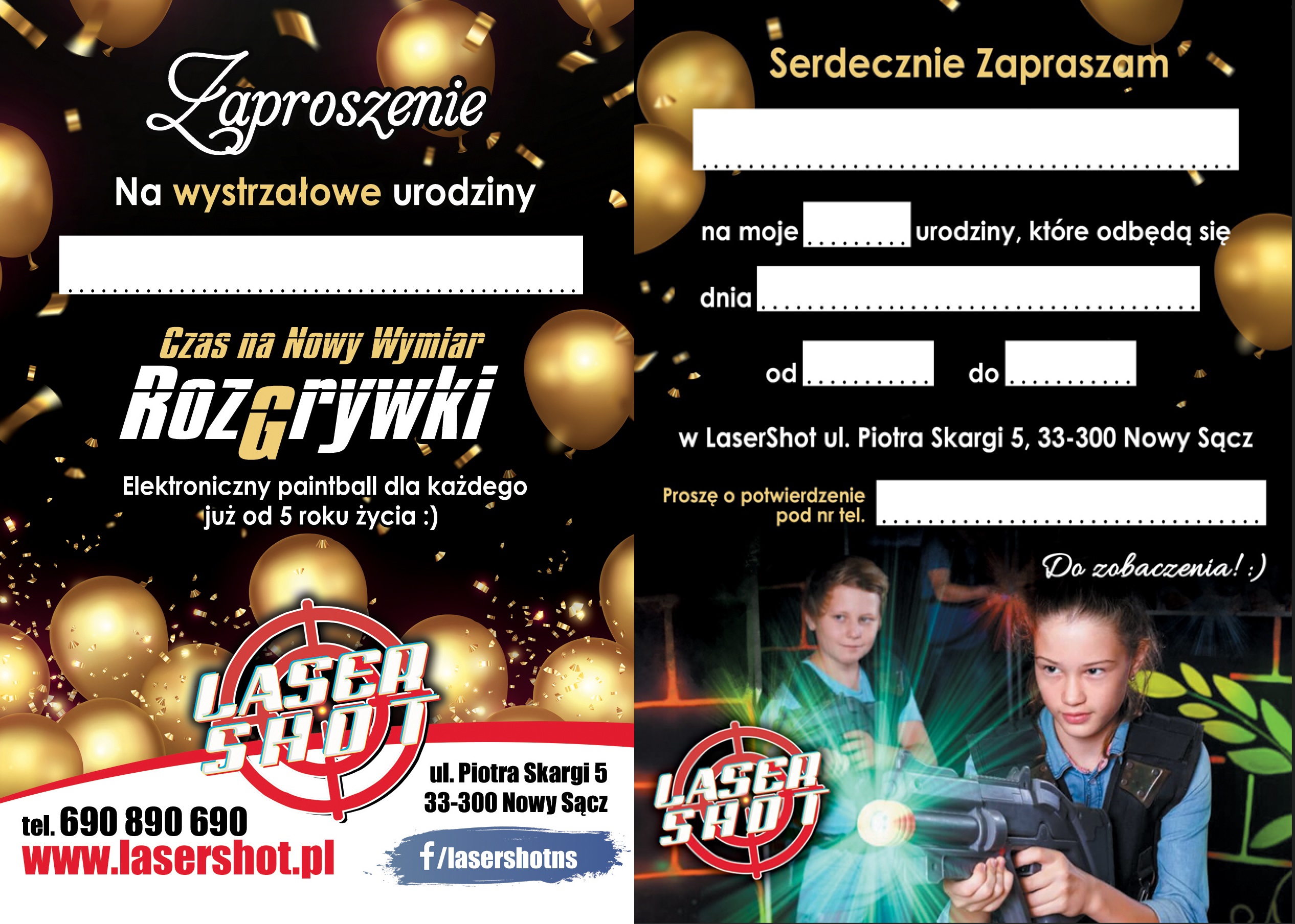 Szukasz sposobu na aktywne spędzenie czasu dla siebie i swojego dziecka? A może chcesz wybrać się ze znajomymi na super rozrywkę bez górnego limitu wiekowego? Pomyśl o paintballu, ale w bezpiecznej formie. LaserShot to wspaniały sposób na rozrywkę dla dorosłych i dla dzieci, która zaangażuje nie tylko fizycznie, ale też sprawi, że rozwiną zmysł spostrzegawczości, refleksu i wzroku. Serdecznie zapraszamy rodziny z dziećmi już od 5. roku życia do skorzystania z centrum rozrywki LaserShot w Nowym Sączu. Gwarantujemy niezapomniane przeżycia i mnóstwo frajdy.